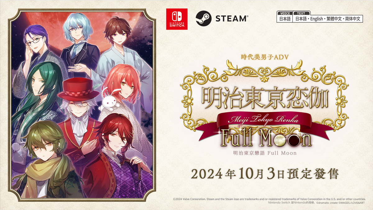 加入了巖崎桃介(CV. 細(xì)谷佳正)路線的愛河《明治東京戀語 Full Moon》(2016 年 8 月發(fā)售)再攜新元素登陸 Nintendo Switch 與 Steam 平臺(tái)!